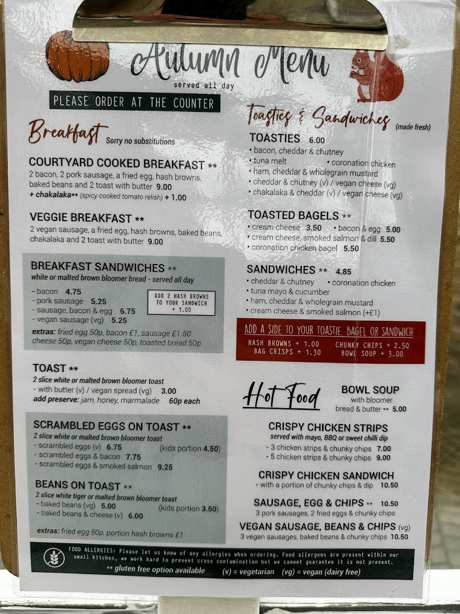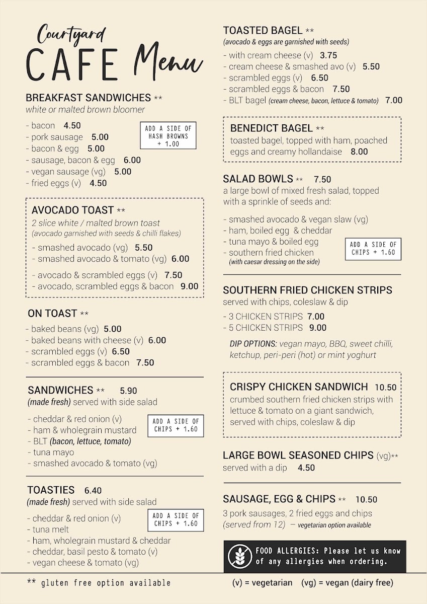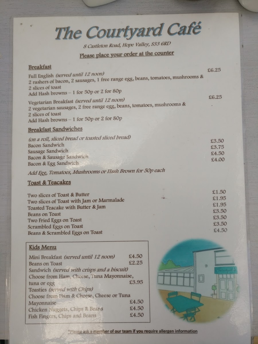 Welcome to Courtyard Cafe Hope, your culinary haven nestled in the beautiful Hope Valley. This cafe boasts a delightful menu that caters to diverse palates, featuring everything from scrumptious breakfast options to hearty lunches. Start your day with their standout Full English breakfast, praised for its fantastic quality and cooking. For lighter fare, don't miss the Avocado & Scrambled Eggs on Toast or their unique toasted bagels like the Coronation Chicken and BLT. Each dish reflects a commitment to quality and presentation that keeps customers returning.